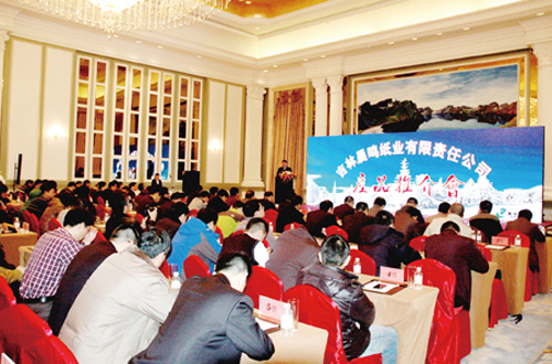 為拓展市場(chǎng),提升吉林晨鳴產(chǎn)品知名度,在晨鳴集團(tuán)統(tǒng)一布置下,2月20日至22日,吉林晨鳴產(chǎn)品推介會(huì)在吉林市世貿(mào)萬錦大酒店隆重舉行。來自山東、北京、東北的65家客戶105人參加了推介會(huì)。