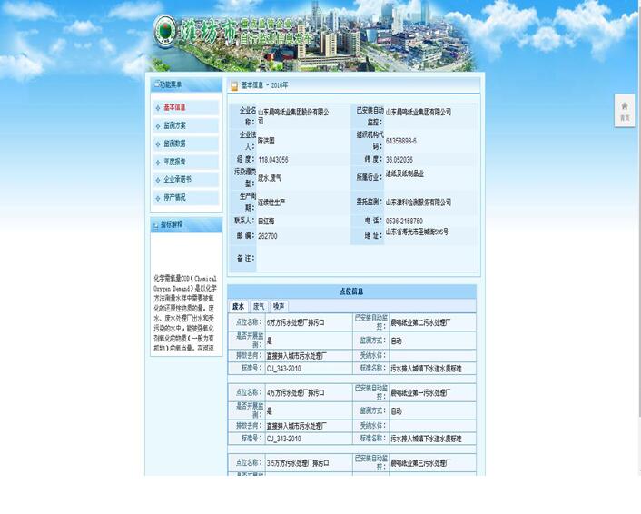 山東晨鳴紙業(yè)集團(tuán)廢水、廢氣自測(cè)公示161013